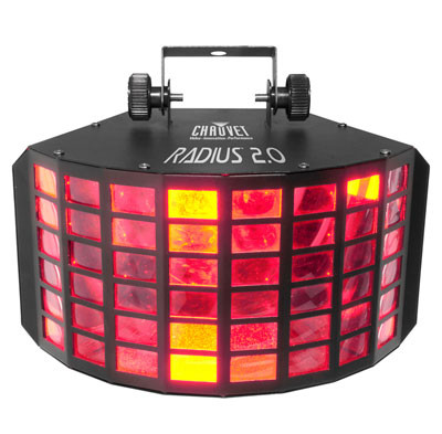 Create overlapping, multi-colored rings of light with Radius' 2.0. Powered by 3W RGBWA LEDs, this fixture offers variable strobe in any color combination and features a variable-speed motor to control back-and-forth motion. Built-in automated and sound-activated programs operate with or without DMX control.