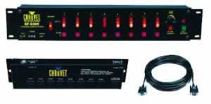 Lighting control system with 8 on/off switches, 8 flash switches. 1 relay pack with 8 plugs. Link-able relay packs. 15-amp rated. 25-ft cable. All on, chase, all off, control.