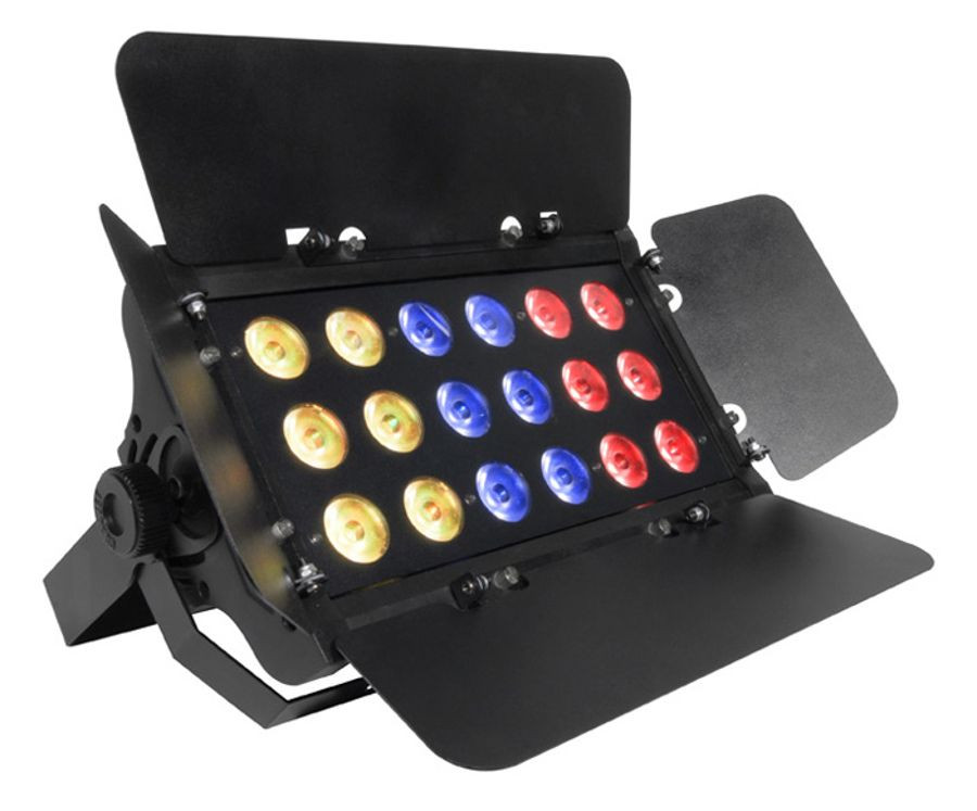 SlimBANK T18 USB is a powerful washlight with 18 tri-color (RGB) LEDs that achieve smooth color mixing. Adjustable barn doors help direct and focus the light. Convenient control options include auto and sound-activation programs as well as DMX. USB compatibility provides fast and easy wireless options.