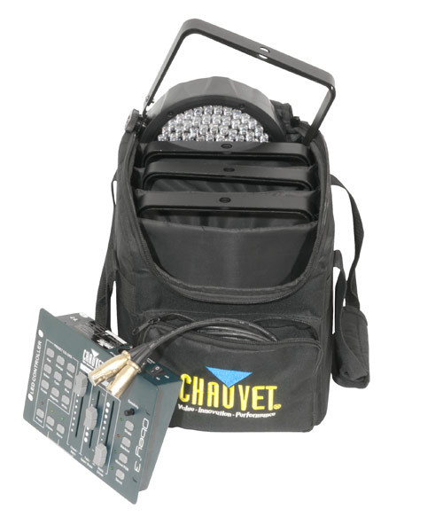 SlimPACK' 56 bundles several popular products into an easily transportable VIP Gear Bag perfect for the mobile entertainer. The package includes four SlimPAR' 56 wash lights, an Obey' 3 DMX controller, and four, 10-foot (3m) DMX cables conveniently packed in a CHS-SP4 VIP Gear Bag. This cost saving bundle is the perfect starter package or a great addition to an existing lighting rig.