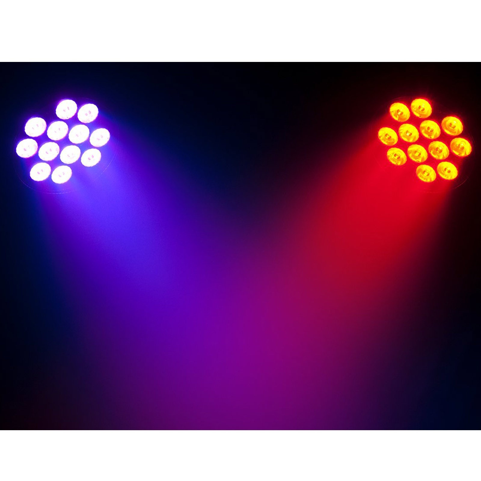SlimPAR T12 BT makes remote light control easy with its on-board Bluetooth technology. Download the BTAir app for free from your favorite app store and enjoy the ultra-convenient ease of controlling SlimPAR T12 BT right from your smart phone or tablet. SlimPAR T12 BT has 12 tri-color (RGB) LEDs and its compact design easily fits inside sticks of truss making it perfect for truss warming. An optional IRC-6 remote can also be used for control as well as DMX, automated and sound-activated programs. Compatible with BTAir.