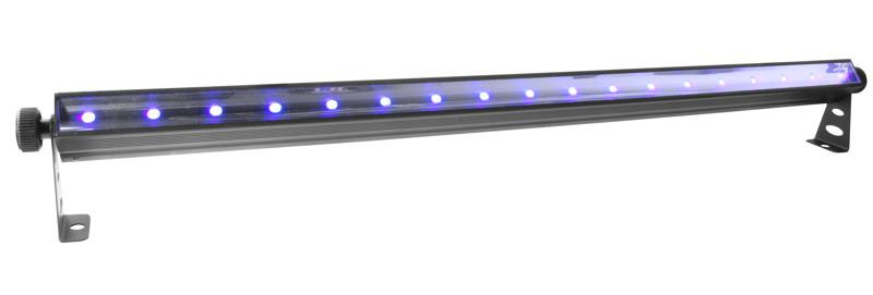 SlimSTRIP' UV-18 IRC is a high-output ultraviolet wash. This eco-friendly replacement for standard 48-inch fluorescent tubes can be controlled via DMX, or convenient wireless non-DMX control using the optional IRC-6 remote control. To create large displays, attach multiple units together with the optional CBB-6. It is ready to use right out of the box and transports easily in the CHS-60 VIP Gear Bag.