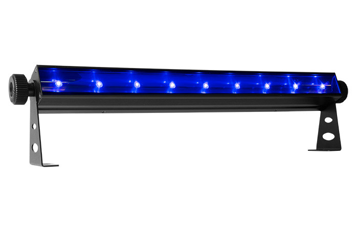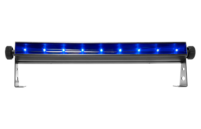 The Slim Strip UV-9 is an ultra-compact (0.5m) and powerful black light. Whether highlighting specific areas or just having a black light party, this economical and power fixture is a perfect solution.SlimSTRIP' UV-9 is a versatile fixture that is not only ideal for accenting walls and other surfaces, but also can be used to create unique beam effects. With no moving parts, it's ideal for venues where silent operation is essential. Multiple units can be linked in master/slave mode. Control options include automated, and DMX mode. Optional IRC-6 remote can be used for wireless control.