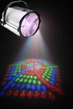 Specifications• Covered angle: 46 degrees• Light source: 282 (66 red, 90 green, 66 blue, 18 white, 42 amber) LED's • AC power: Autoswitching 100V-240V 50/60Hz• Weight: 7.5lbs• Size: 11.3in x 12.4in x 10.4in