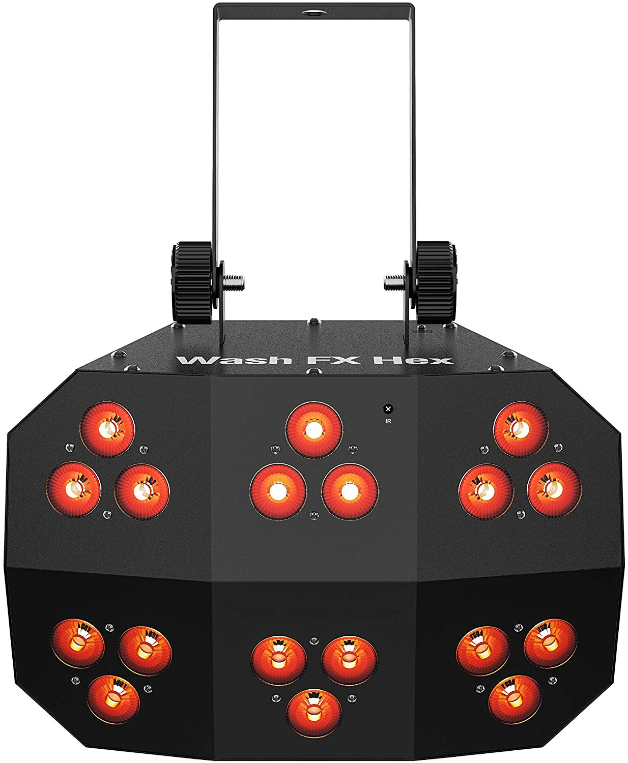 Brilliance, brightness and versatility are packed inside this powerhouse multi-purpose effect light that packs a punch with hex color (RGBAW+UV) LEDs. Wash FX Hex functions as a chase effect, blinder, or a wash light. 6 chasing zones mean Wash FX Hex can be used as a regular wash light or eye-candy effect and an advanced master/slave feature that allows you to mirror effects between units.