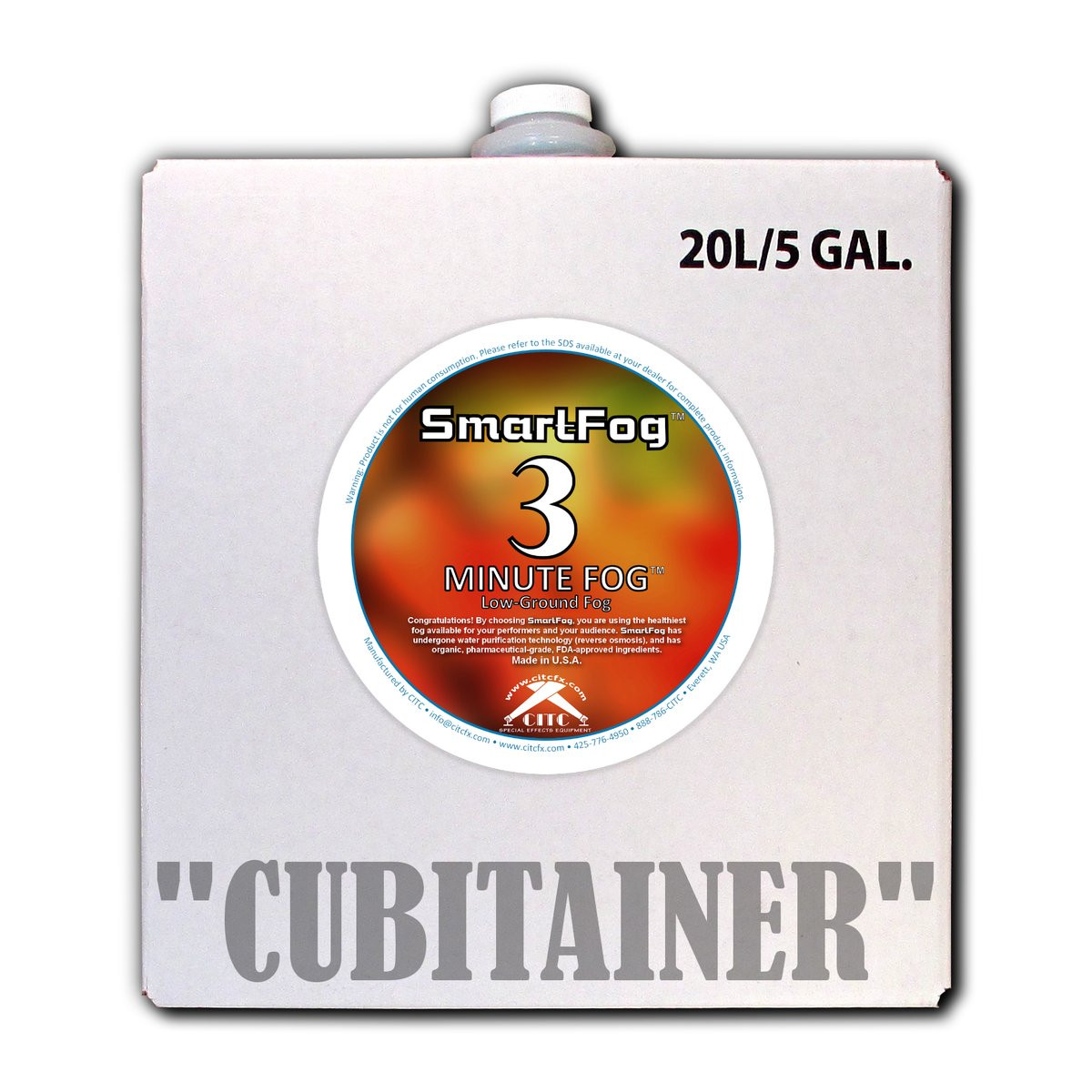 CITC's SmartFog is the healthiest fog available for your performers and your audience. SmartFog has undergone water purification technology (reverse osmosis), and has pharmaceutical-grade, FDA-approved ingredients. Made in the U.S.A.