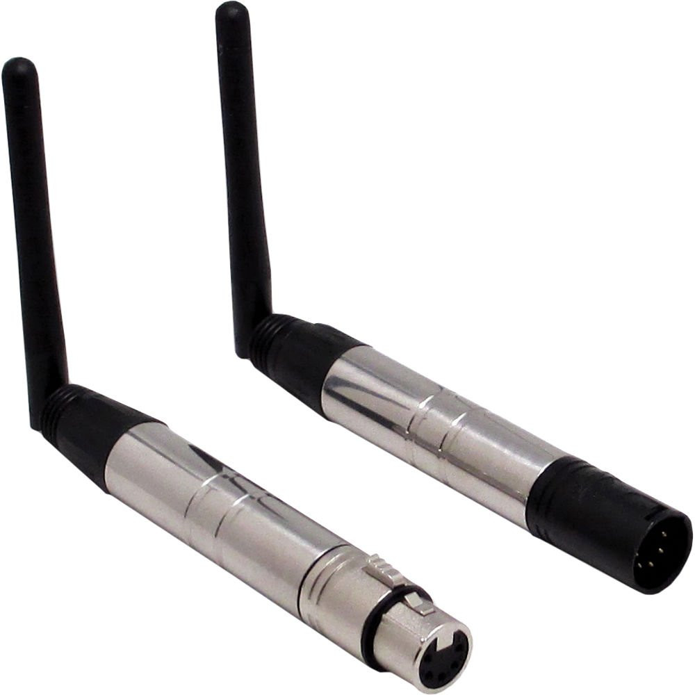 Go cord-free w/wireless transmission of your DMX signal! Transmitter and receiver, both with 5-pin connectors. Full 512 DMX channel coverage.