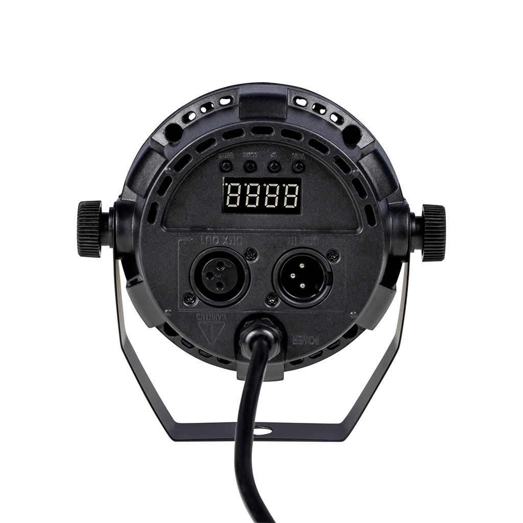 • Quad color LED wash light with motorized RBG party bulb effect