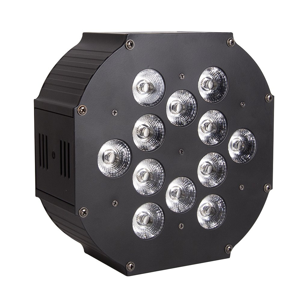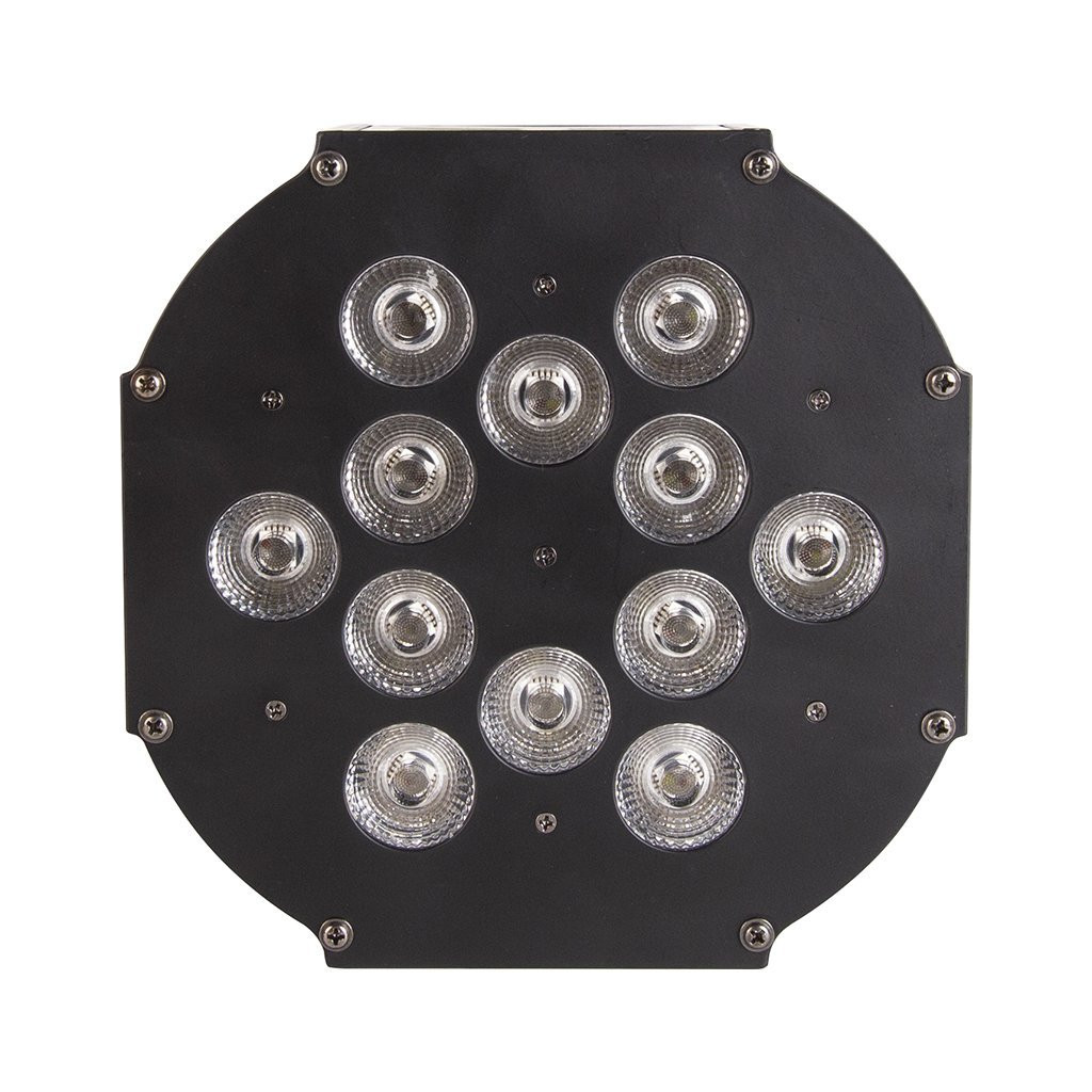 The WaferPar Hex 12 MKII is a versatile LED Par fixture with 12 x 15-Watt, 6-IN-1 HEX LEDs. The WaferPar Hex 12 MKII features a 35-degree beam angle, users may produce wide washes with smooth color mixing from 63 built-in color macros utilizing red, green, blue, amber, white and UV LEDs.