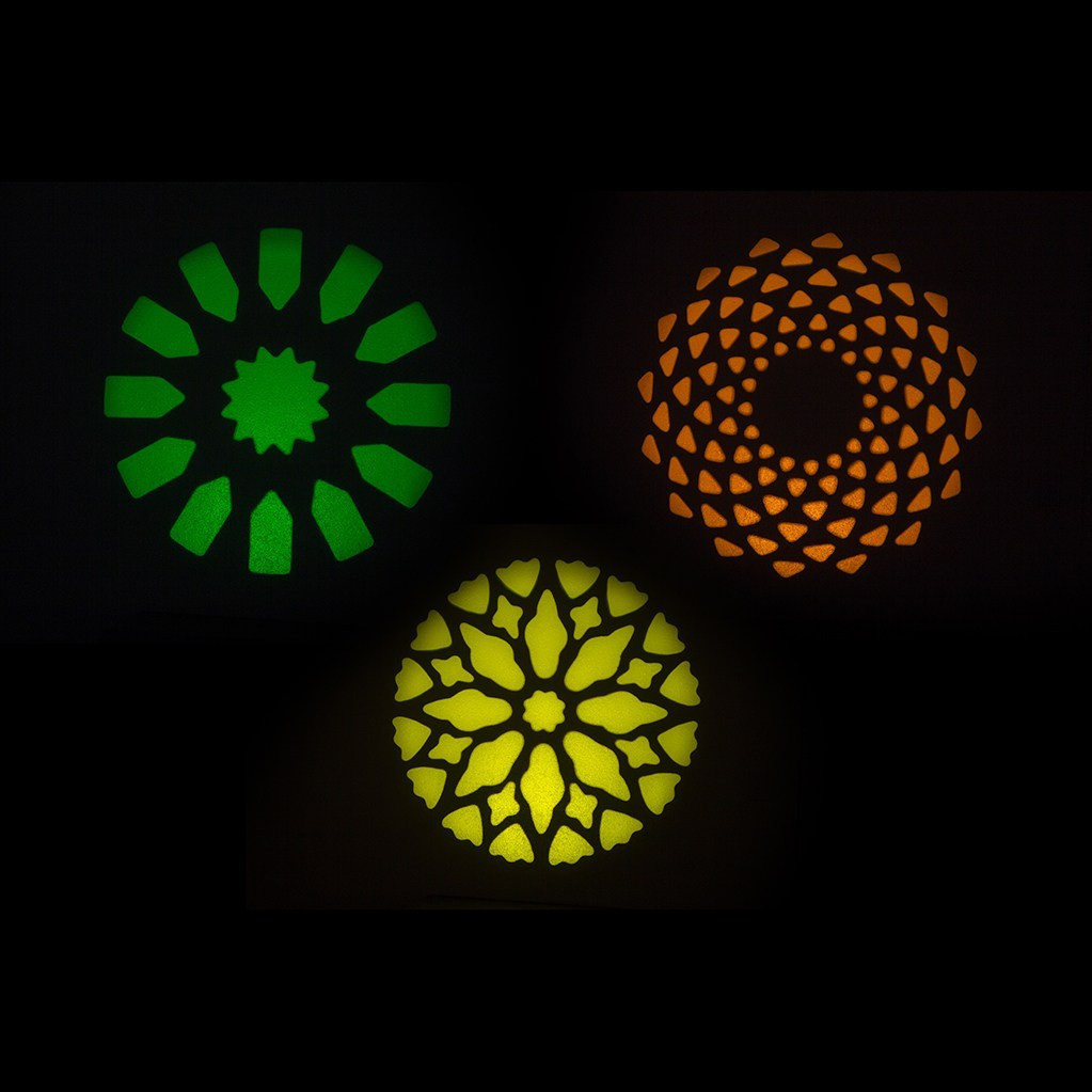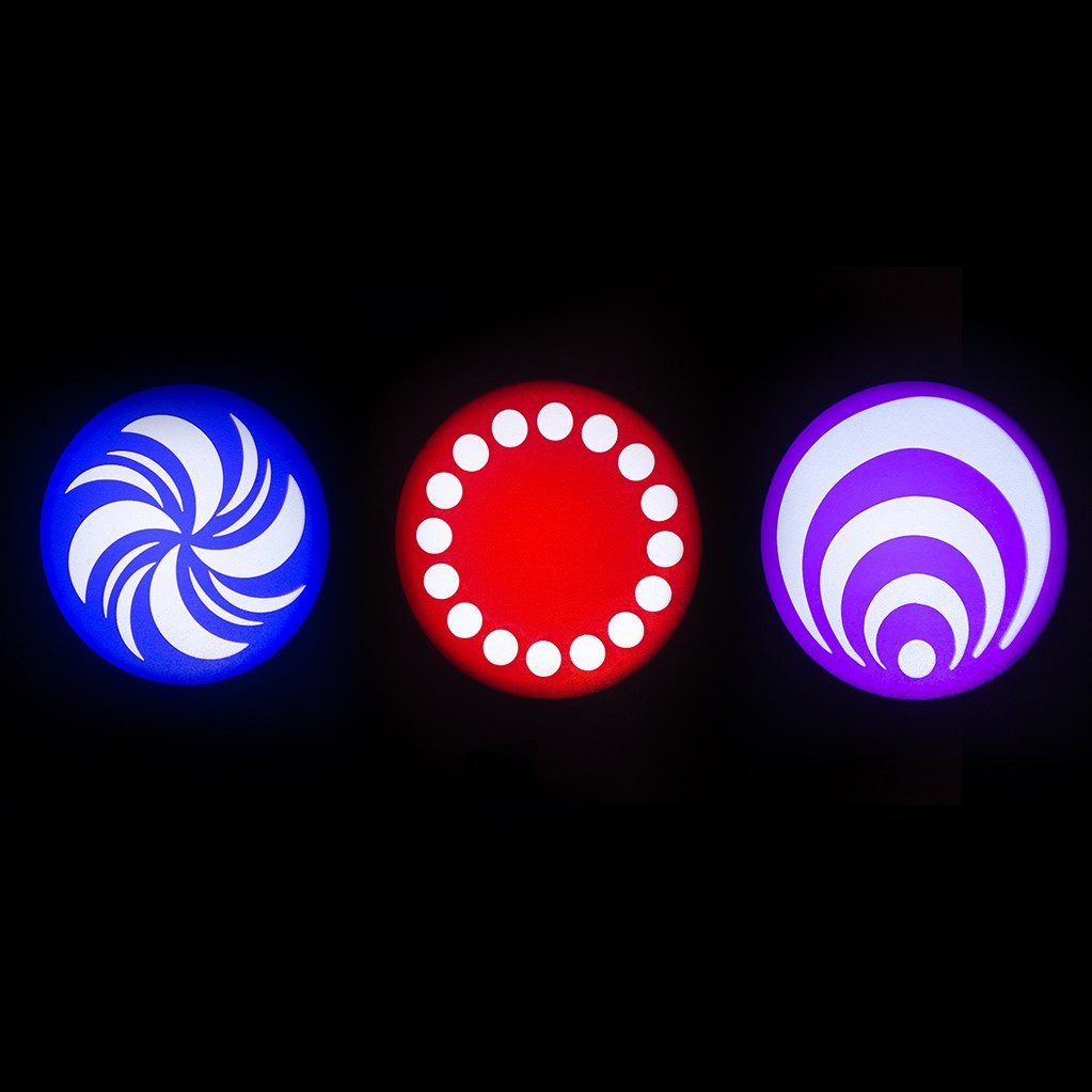 • Dual gobo wheels: 7 static metal gobos plus open and 6 glass rotating gobos plus open