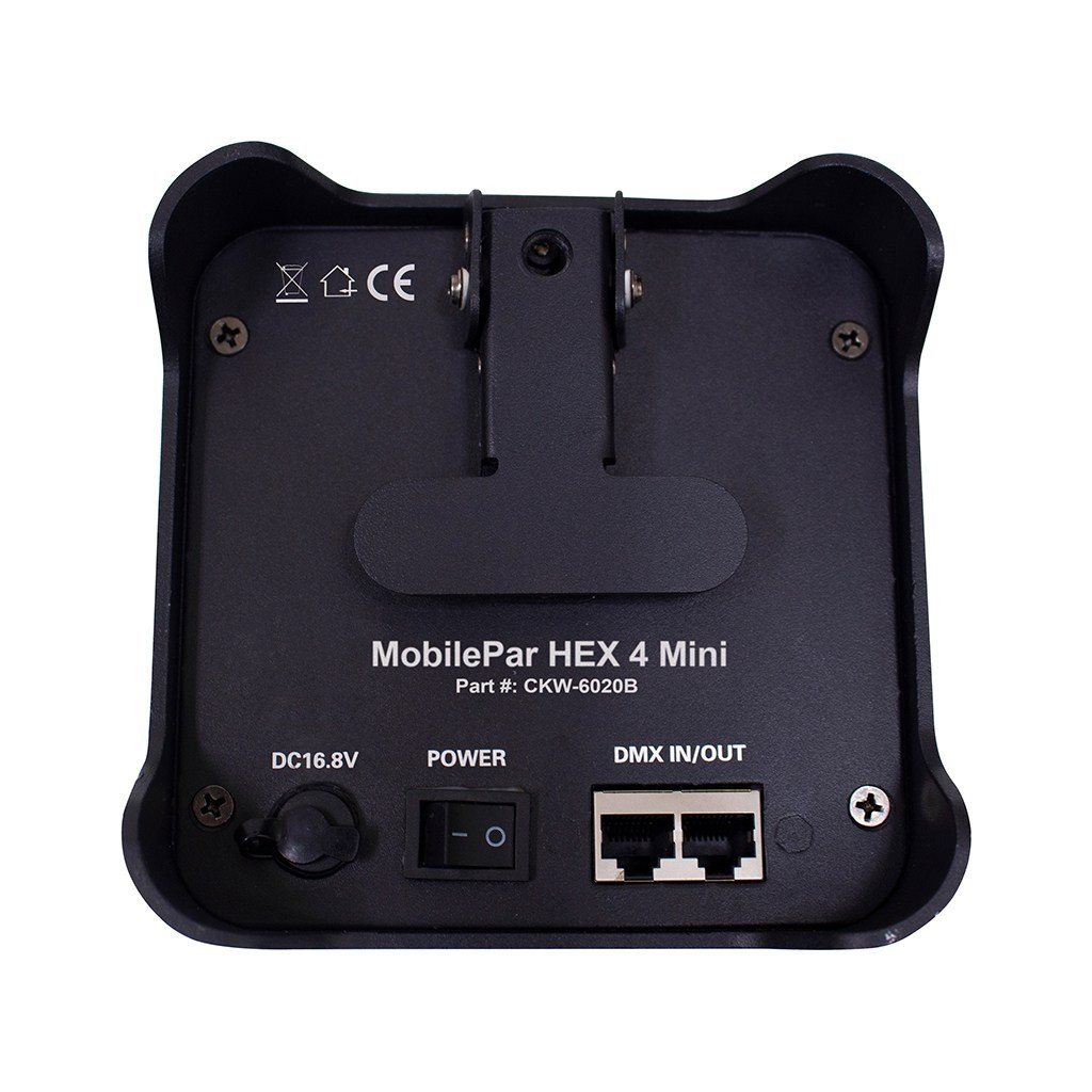 For a limited time - Buy 4 MobilePar Mini Hex 4 uplights and get 2 FREE! The MobilePar Mini HEX 4 is the most compact model in the next generation of battery powered, wireless-DMX lighting. The MobilePar Mini HEX 4 features four 12-watt RGBAW+UV LEDs that increase the visibility and breadth of your lighting show. Both White and UV LED's add more depth to FX's and color mixing. The built-in adjustable kickstand allows the light to be positioned and effortlessly focused in any setting.