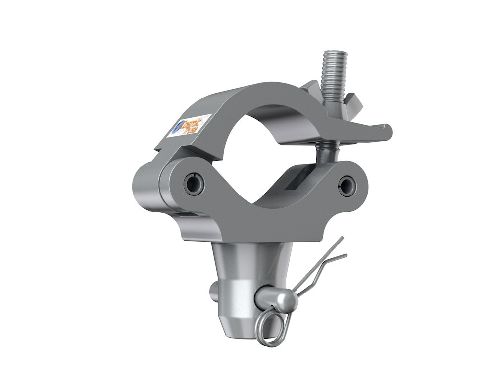 The 5035-2A is our Narrow Half Coupler with an attached half conical allowing for seamless integration to any standard chord of Cosmic Truss, be it square, triangular, ladder or the single chord F31 system. This coupler is great for creating vertical hang pipes and other constructions with a minimum if hardware. The 5035-2A coupler fits all standard pipes with a 2 inch (48-51mm) diameter, and features a tensile load capacity of 440lbs. (200kg).