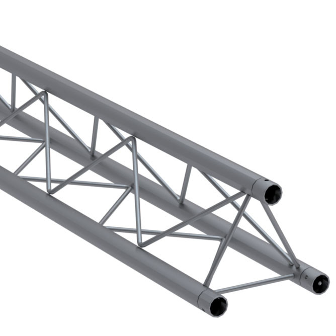 Cosmic Truss F23 is a triangular high strength truss system that combines lightweight and high capacity. The triangular construction provides optimum strength and loading capacity for its size, with a standard tube diameter of 35mm (1.37 inch). Section pieces connect together using a conical coupler, which is then secured with a locking pin, and a further safety clip for added security.