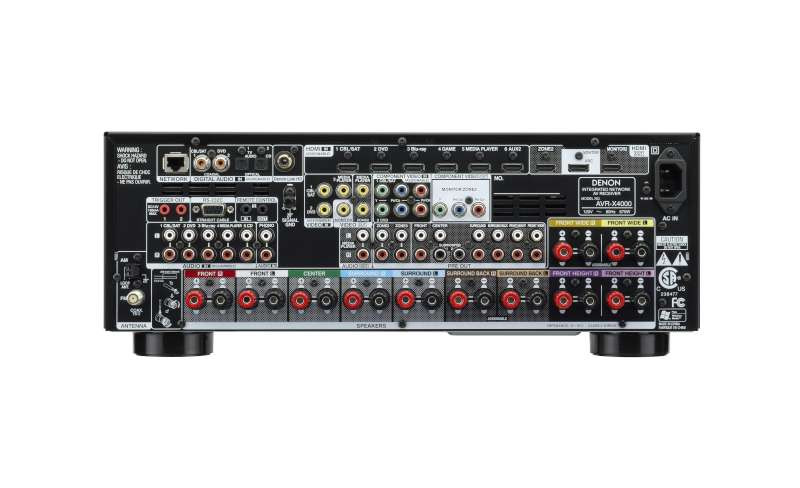 The AVR-X4000P A/V receiver is packed with Denon technologies that deliver superior sound and picture quality through 7.2 channels. It also provides a wealth of features for enjoying music or video programs, such as 4K Ultra HD upscaling, AirPlay for streaming music from an iTunes library, Spotify playback, internet radio broadcasts, playback of music stored on a networked PC or hard disk as well as HD audio (up to 192 kHz) music sources, and a multi-zone feature that lets other people enjoy music or video entertainment in a separate room while you enjoy your own programs in the main room. The advanced surround sound capabilities of the AVR-X4000P can be expanded to a maximum of 9.2 channels by adding a separate power amp.