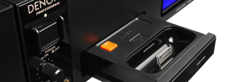 The front mounted dock isn't restricted to just iPod usage - when used with an iPhone/iPod touch there is a mass of extra functionality that can be accessed through the brand new Denon professional Pitch Control App (available to download from the App StoreSM). Simply playback and control the iPhone/iPod Touch music files via the apps intuitive layout: from simply playing back music (via artist, title, album and playlist filters) to using the touchscreen pitch or master key slider to increase or decrease the pitch/tempo as desired, plus the full control of playback, track selection, cue and frame search. Additional functionality of Master Key is included in the App, allowing the musical key to be maintained when while changing the tempo of the music.