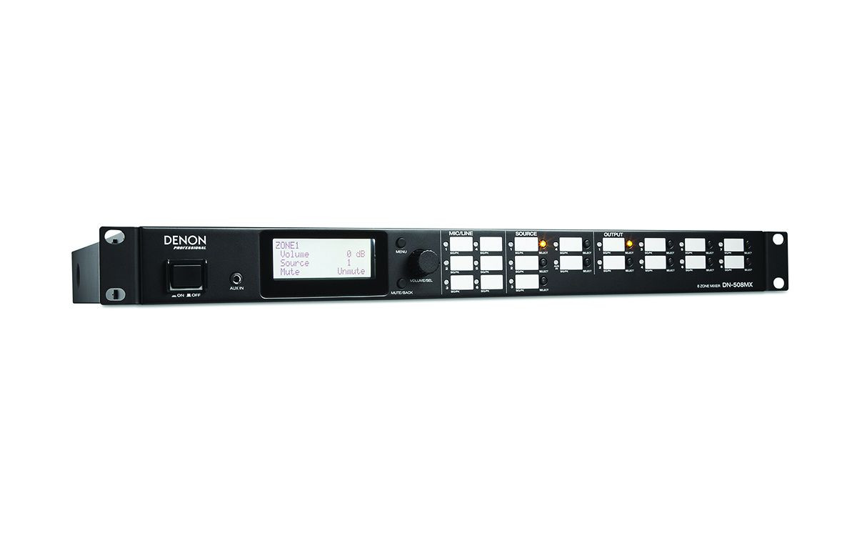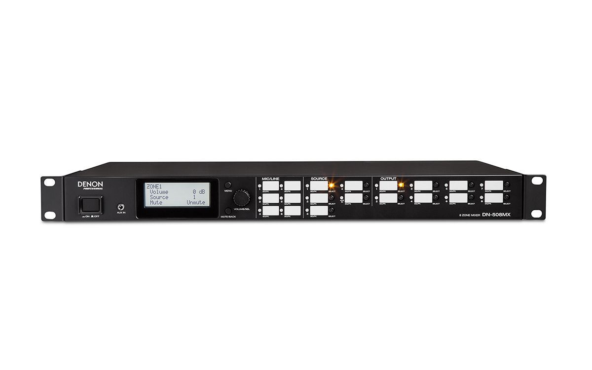 Typical applications include restaurants, hotels, museums, nightclubs, sports bars and large corporate offices. Both mixers have remote controllability via RS-232C and IP for the commercial installations. The DN-508MX and 508MXA also have several features dedicated for professional use such as a professional grade head-amp, MIC/LINE PAD, full BTL balanced outputs, 3-band EQ for inputs, 5-band EQ for outputs, Priority, Delay, Dynamics, system control application (Web remote), and scheduling function to operate automatically for optimum energy efficiency.