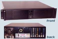 This is a full size PC with a full size motherboard and lots of expansion room! 3 rack spaces tall and 19" deep. 2.0+GHz Athlon, 256 MB RAM, (1) DVD/CD, Waveterminal 192 sound card. Five PCI slots, One AGP slot. Three slot left empty for your expansion use. All drives and switches are located behind the two locking front doors.
