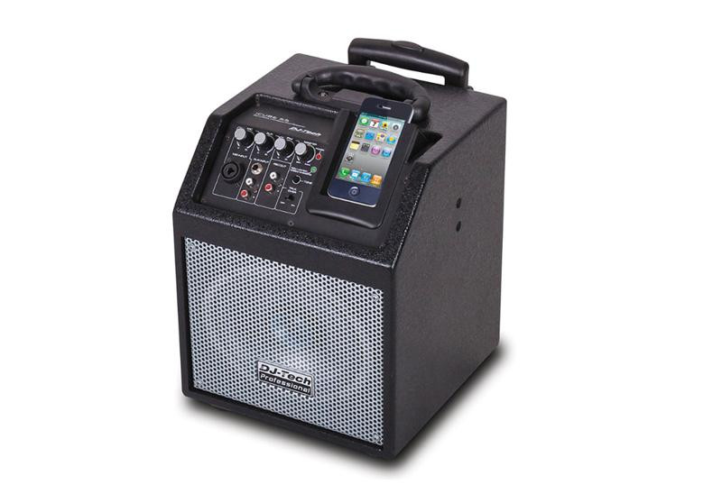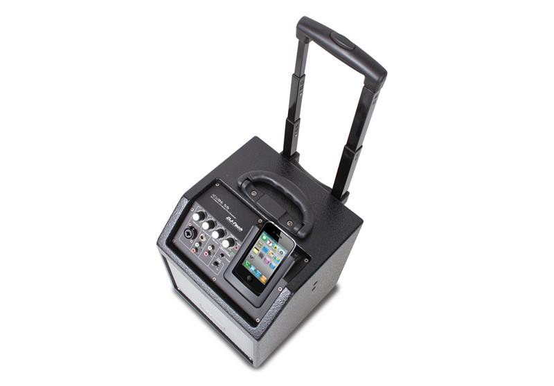 DJTech iCube 55 is a Wireless PA System with 3 channelmixer to mix either your iPhone, Microphone or guitar.