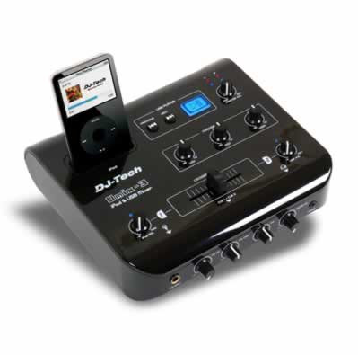 DJ-Tech is proud to introduce Umix-3: The first world wide consumer Dj Mixer featuring Twin: iPod + USB Player, which can mix Audio & Video @ an incredible low price. Built in a lightweight ABS casing, Umix 3 is a 2 channel Mixer with Full 3 band EQ.