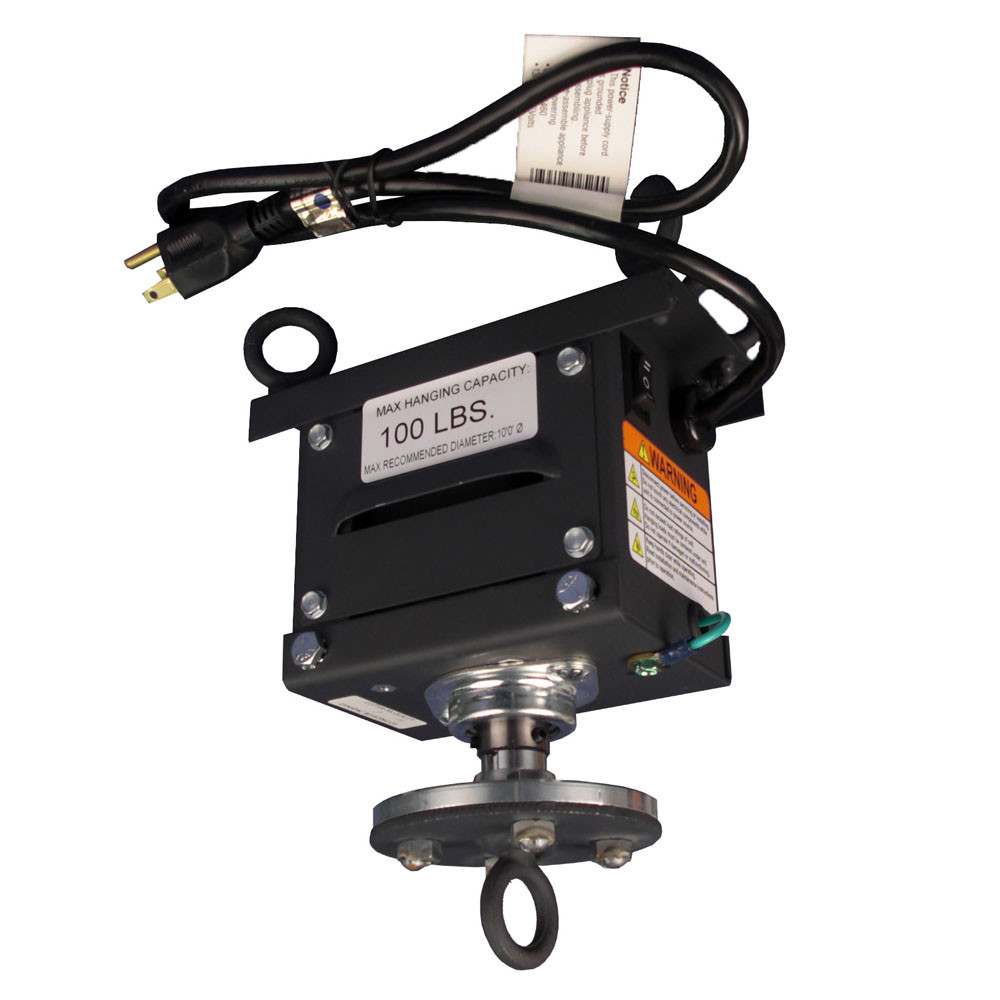 This IG-2 Hanging Rotator is a durable, dependable unit ideal for small indoor hanging trade show banners and POP (Point of Purchase) displays weighing up to 100 lbs and rotating at 6 RPM. You could even hang a mirror ball up to 36" in size by adding a strong S-hook.
