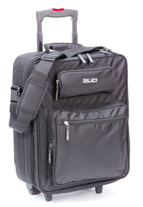 The Ecler EV05 Trolley is a carry-on style luggage bag designed specifically for an Ecler EVO5 series mixer, laptop and additional accessories. The Trolley features waterproof nylon, plenty of storage pockets, a retracting handle, strap, and casters. The EVO5 Trolley easily stores in the overhead compartment on a flight