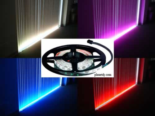 ELATION FLEXLED TAPE is a very thin and flexible LED circuit strip that can be cut every 2" and put back together using simple soldering techniques. It comes available in RGB and Single Color versions. High output, low heat and easy installaton makes this product idea for a variety of applications. It's called tape because the back of the strip uses 3M adhesive glue to tape the LED strip anywhere you need it. It has been prefabricated in a 10' spool (RGB ver) with 60 x 2" black circuit strips holding 3 SMD chips each for a total of 180 120 SMD LED chips with total power consumption of 43-watts (max. 2pcs with 4A PSU & 8pcs with 12A PSU with amplifier every 3 rolls). Power supplies offered are UL and CSA approved. The single color spools are 20' in length with 360pcs SMD single color LED on white flexible circuit strip with the same spacing but direct wire 12v from any standard 12v DC power supply with a total of 86watts per spool (max 1pcs with 4A PSU & max 5pcs in line with 12A PSU). FLEX RGB TAPE has an optional infrared wireless controller to change colors, select 16 static colors or run color fades or color snap programs. You can use the signal amplifier if there is more than 10pcs in one system or if you want to synchronize multiple zones.