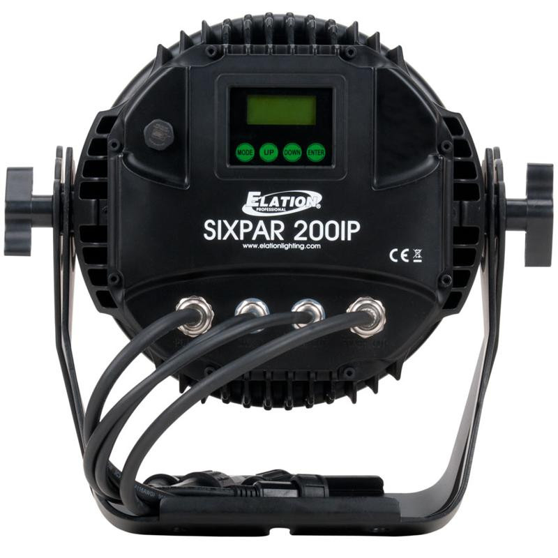 The new IP65 rated SIXPAR 200IP features (12) 12W 6-IN-1 RGBAW+UV LEDs, 100,000 average hour LED life, 15 beam and 25 field angles, electronic strobe and dimming (0-100%), 5 variable dimming curve modes, dual yoke / floor stand, multiple unit power linking, RDM (remote device management), rugged die-cast aluminum exterior, flicker free operation for TV and FILM, 150W max power consumption, and a multi-voltage universal auto switching power supply (110-250v).