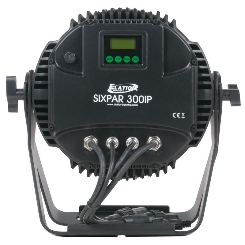 The new IP65 rated SIXPAR 300IP features (18) 12W 6-IN-1 RGBAW+UV LEDs, 100,000 average hour LED life, 15 beam and 25 field angles, electronic strobe and dimming (0-100%), 5 variable dimming curve modes, dual yoke / floor stand, multiple unit power linking, RDM (remote device management), rugged die-cast aluminum exterior, flicker free operation for TV and FILM, 220W max power consumption, and a multi-voltage universal auto switching power supply (110-250v).