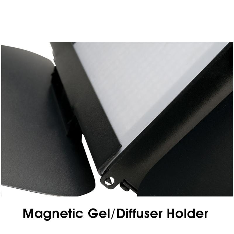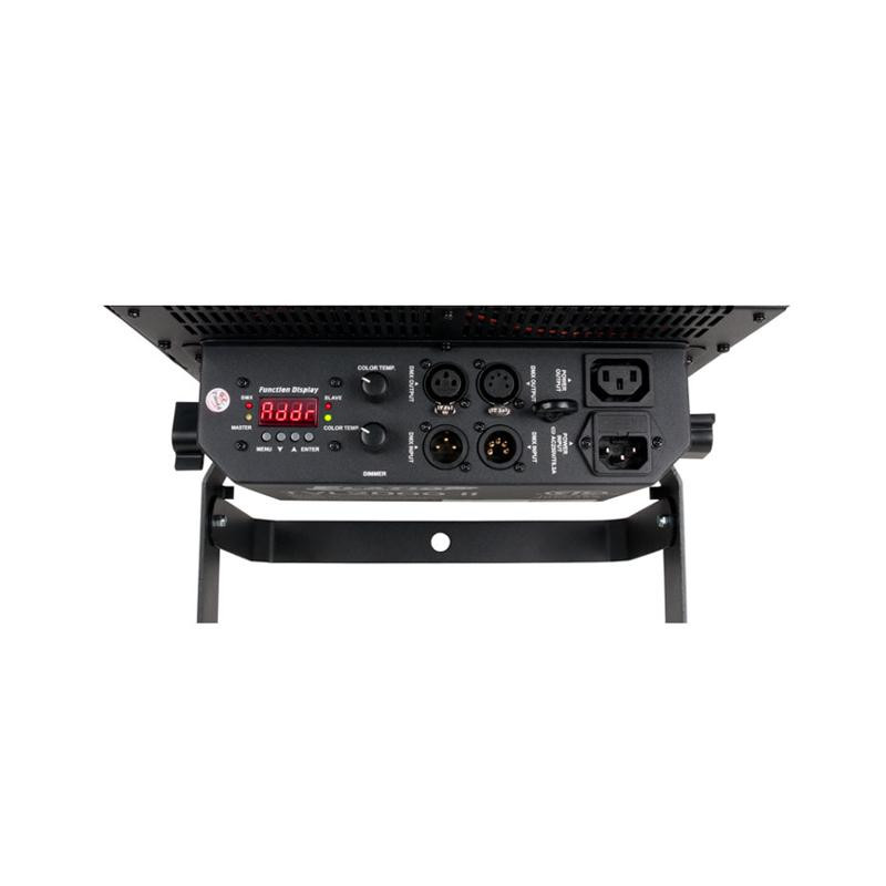 The new improved TVL1000 II features a low heat, >90CRI, dynamic LED array panel consisting of 200 warm white and 200 cool white LEDs, 30 beam angle, variable manual and DMX controlled color temperature (3,200K - 6,500K) and dimming, adjustable barn doors, magnetic gel/diffuser holder, flicker free operation for broadcast TV and FILM, 3 and 5 pin DMX in/out and linkable power in/out connections, (4) button (2) dial LCD display control panel, 68W max power consumption, and a multi-voltage universal auto switching power supply (100-240v).