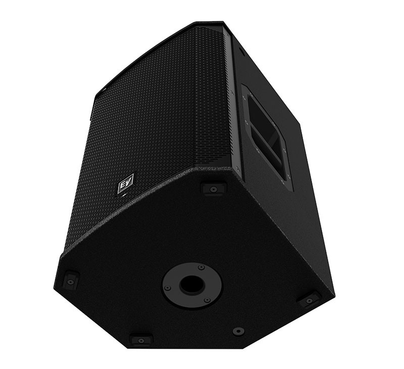 • Lightweight, compact 15-mm wood enclosure with internal bracing, durable EVCoat finish, eight M10 threaded mounting points, aluminum pole mounts, and all-metal handles