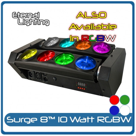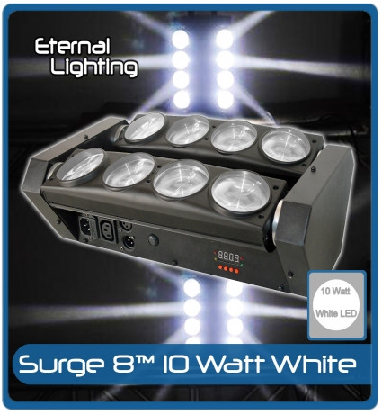 adding beam effects with the Eternal Lighting SURGE 8 which has 10 Watt White LEDs. The more fixtures used in a space the more creative you can get with your design. This fixture is also ideal for Mobile entertainers, Bands and DJs.