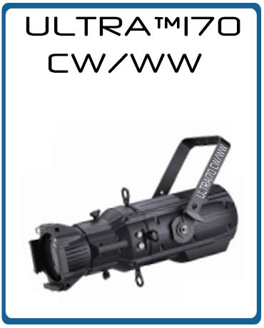 The Ultra170 CW/WW by Eternal Lighting is a 170 watt LED Gobo projector. Includes 2 DMX channels, a strobe, and dimmer.