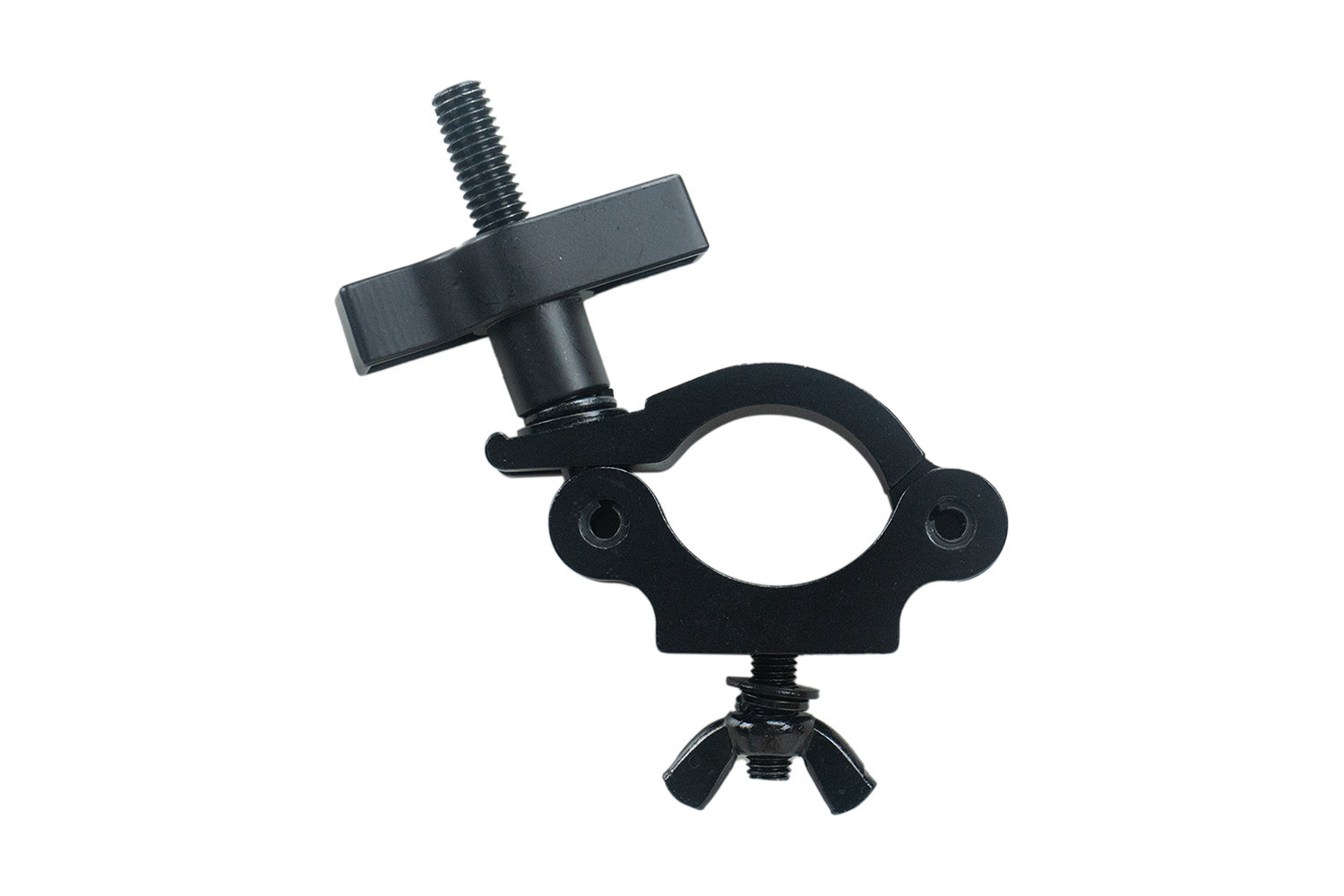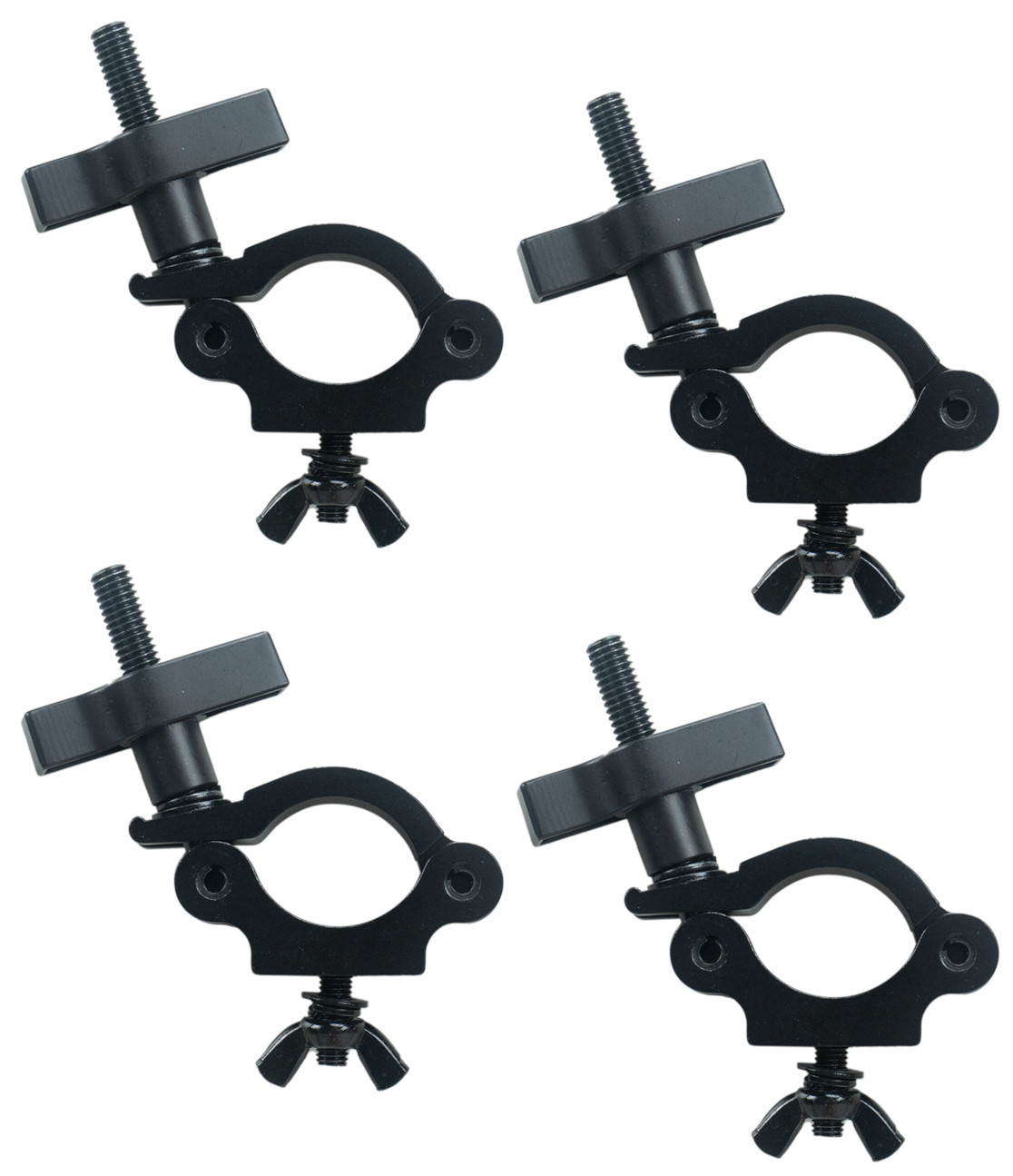 Aluminium Pipe Clamp in Black that accommodates pipe or truss between 1.5" and 2" in diameter (38-51 mm.) 4 pack.
