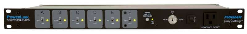 The new PowerLink is a compact, low-cost rackmount Remote Sequencer that provides timing and switching for up to six power control devices, turning them on and off in a preset sequence.