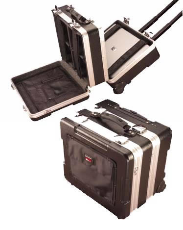 Features• Rugged Polyethylene construction • Telescoping pull-out handle • Recessed wheels • Interior blocking system to accommodate many different projectors • Meet airline specifications • No-slip padded straps to restrain laptop and projector • Convoluted foam lid for laptop section