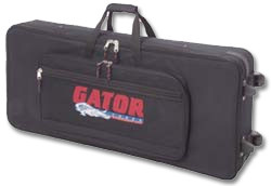 This case is fully adjustable using the Gator exclusive design that utilizes adjustable padded straps that allow you to strap your keyboard securely into place. Large accessory pockets on the outside are perfect for pedals and cables. Built-in wheels, pull out handle and stair-slides round out this case to make it the ultimate in lightweight easy transport for your keyboard.