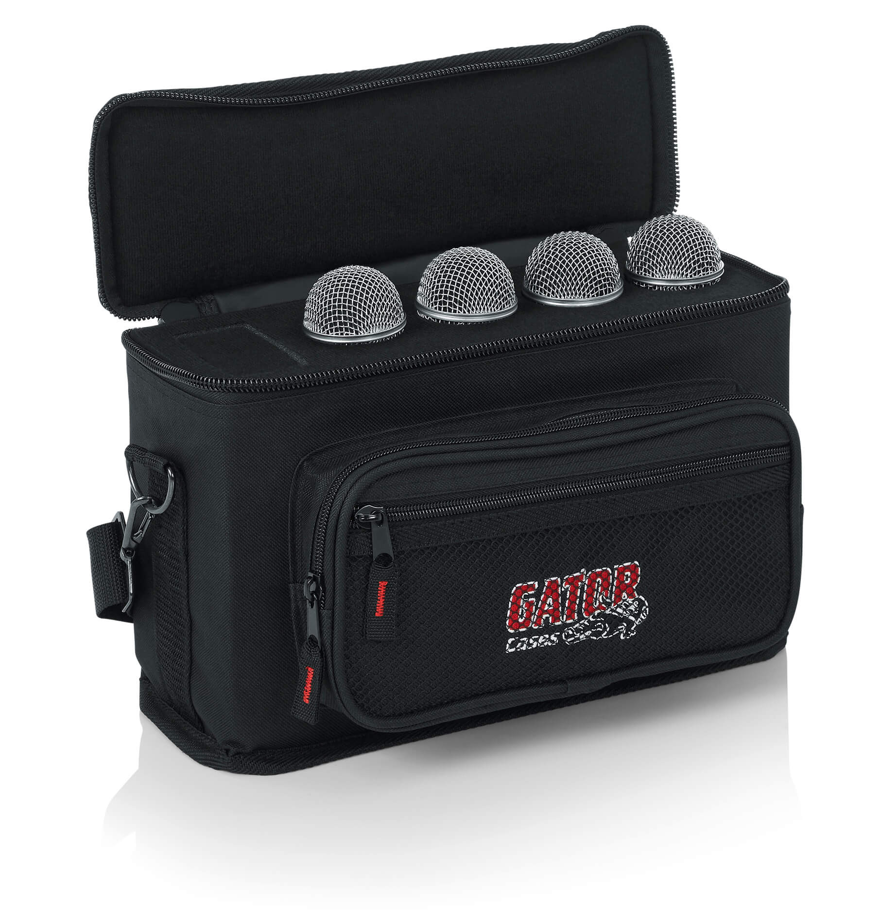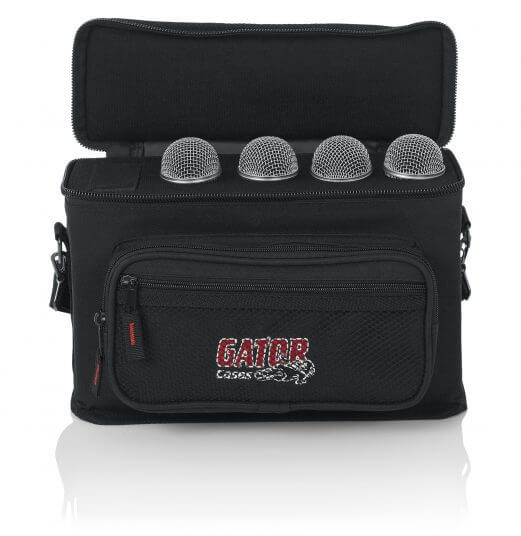 The GM-4 is the perfect carrying case featuring 4 padded microphone drops and a slot for a belt pack. The exterior has a large pocket for cables.
