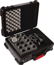 The Gator Pro Mic Case is constructed from military grade Polyethylene and features recessed zinc plated twist latches, padded handle, and triple plated chrome steel corners. The GM-15-TSA microphone case is designed to take the beatings of a band-on-the-road hitting 70 venues in 18 countries. The interior has 15 microphone drops that are formed with thick foam to insure maximum protection plus a generous area for cables, belt packs or accessories. TSA latches further bolster the rugged reliability of the GM-15-TSA. Lockable and affordable - what a concept!