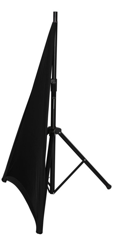 Stretchy cover to cover one base side of most tripod style speaker stands. Black