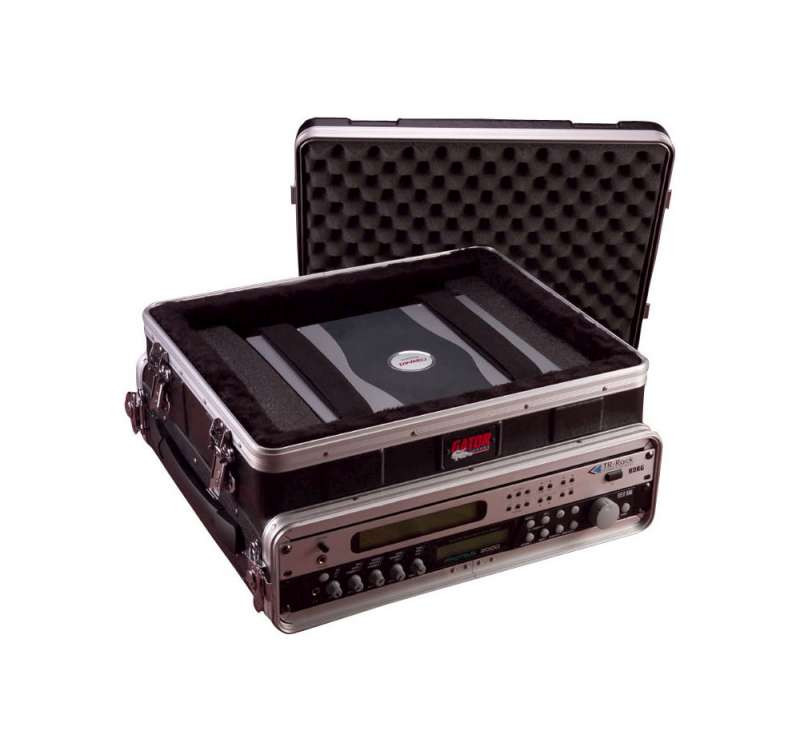 The Gator GRC-Studio-2-Go is a road ready, ATA style case constructed of rugged Polyethylene. The interior features a plush adjustable laptop compartment with web strap tie-downs for protection during transport.