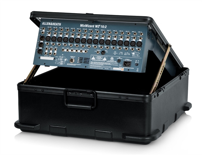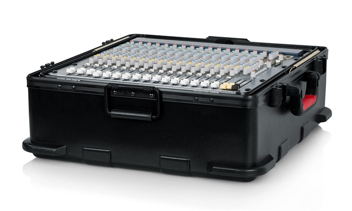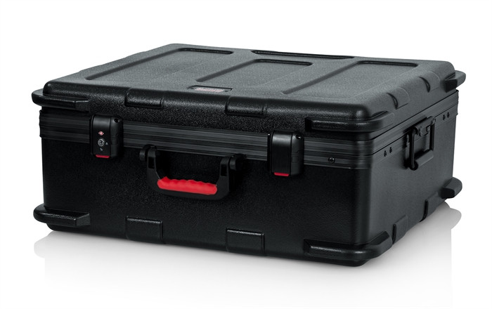 The Gator GTSA-MIX12PU is a TSA Series ATA Molded Polyethylene Mixer Case with 12U Pop-Up Rack Rails, designed to Hold Rack Mountable Mixers up to 12U.
