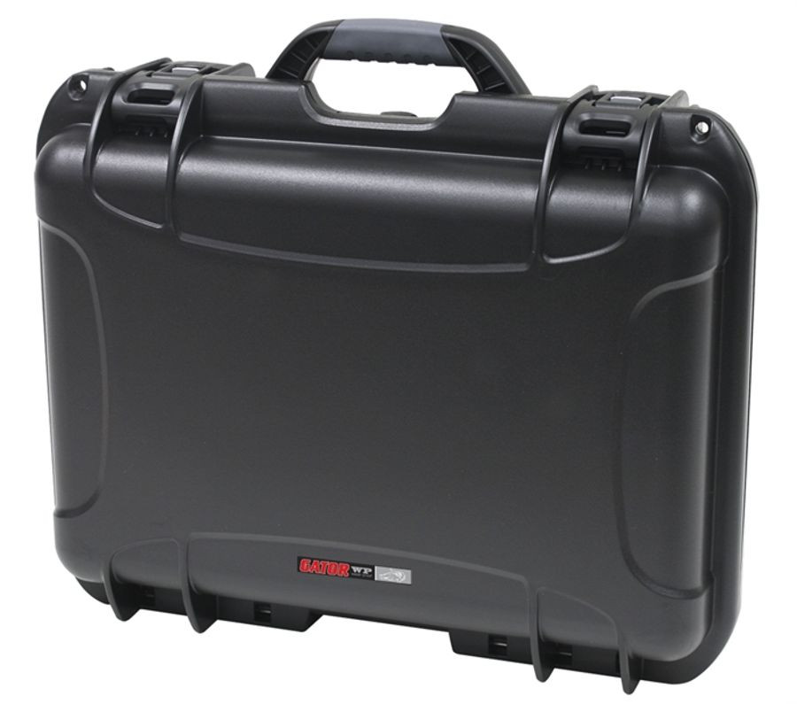 Black waterproof injection molded case with interior dimensions of 17" x 11.8" x 6.4". DICED FOAM