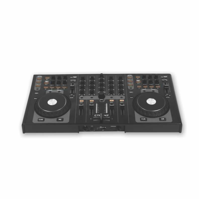 The CTRL-47 gives you a premium-quality 4-channel DJ mixer, an intuitive DJ controller with familiar feel and two touch-sensitive jogwheels as well as a built-in 24 bit/192 kHz soundcard with stable, latency-free ASIO drivers. It gives you maximum control over your DJ software with controls for loops, effects, tone controls, samples, hot cues, and pitch while included VIRTUAL DJ 7 software gets you straight to mixing (The CTRL-47 also works with other popular DJ software).