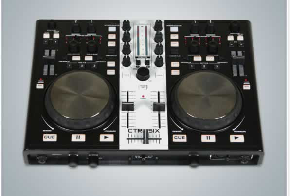 The CTRL-SIX also features a 'soundcard', meaning it has a built-in audio interface and all the jacks you need to slide confortably in to any setting. It has two-channel switchable line/phono inputs (w/ground screw); Rec, Master, and Booth RCA outputs; Balanced XLR output; 1/4" and 1/8" (3.5mm) headphone out w/ volume control; and XLR and " mic input w/ mic volume control.