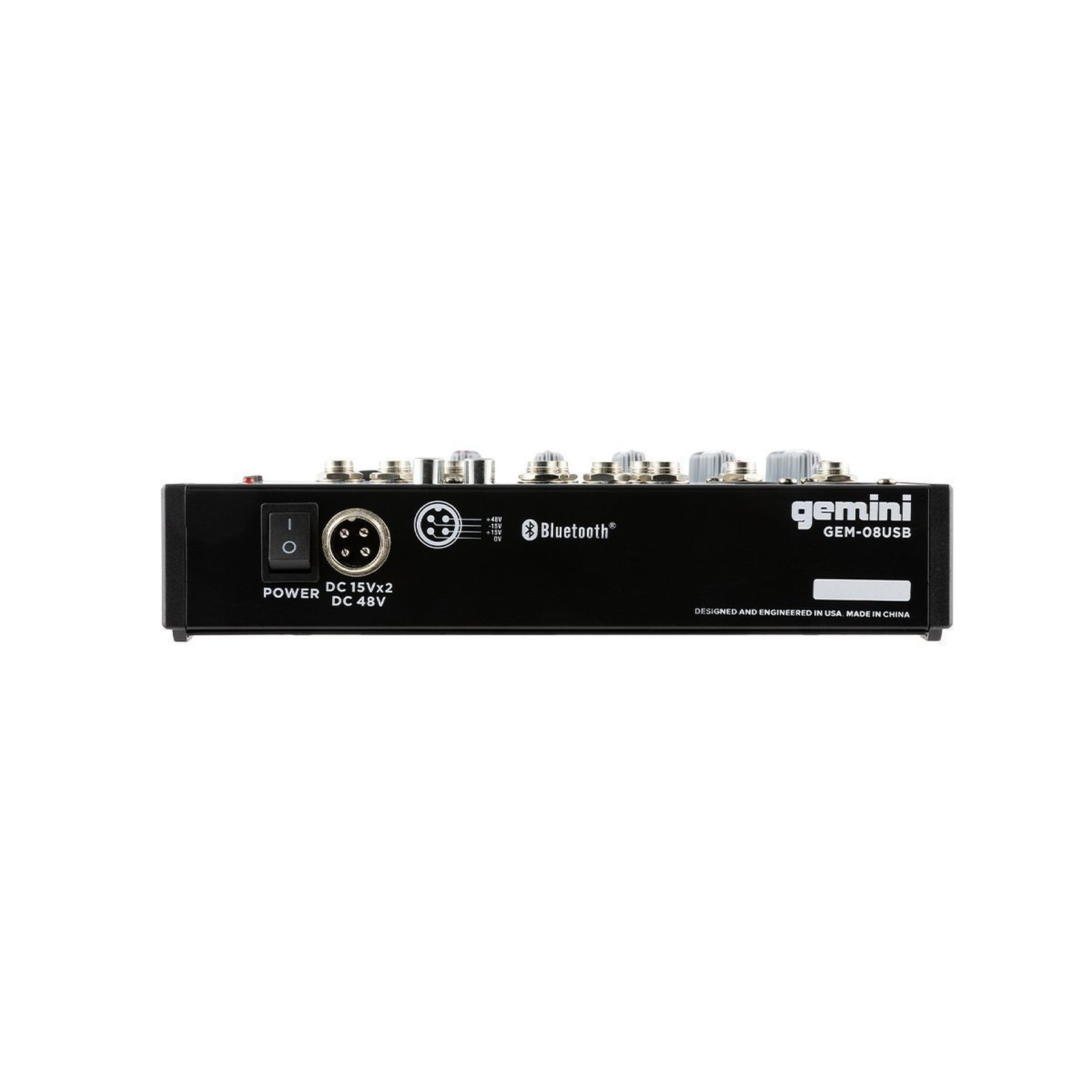 The GEM-08USB mixer makes audio routing easy. Equipped with Bluetooth streaming, USB playback, customizable sound, and a 8-input 2-bus mixer. The GEM-08USB brings state-of-the-art professional-quality audio on the go, giving you all the controls you need.