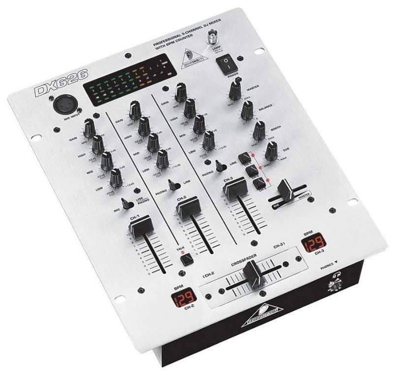 Behringer DX626 MixerThe PRO MIXER DX626 is a professional high-quality 3-channel DJ mixer with integrated Beat-Per-Minute (BPM) counter, and embodies a proven 3-channel design loved by DJs worldwide beginners and professionals alike.