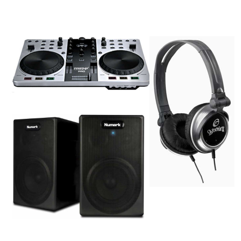 This Gemini bundle includes (1) Gemini FirstMix Pro Controller, (1) Numark NPM5 and (1) Gemini DJX-03 headphones.