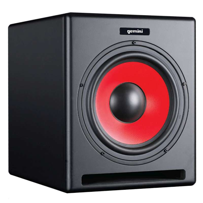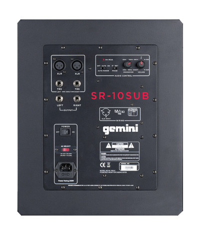 Gemini's SR-10SUB boasts a 10-inch woven glass aramid composite woofer for tight, accurate low-end response. To complement this custom-designed low frequency driver, the elegant, magnetically shielded enclosure incorporates a front-firing port, which helps deliver clean, accurate bass. While rear-firing ports can throw low-end frequencies into walls and corners, creating an imprecise image, front-firing ports ensure clear bass response for a mix without coloration, even at high SPLs.