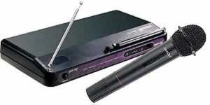 Handheld diversity wireless microphone system. Exclusive "No Distortion" circuitry receiver .