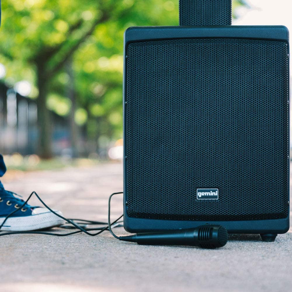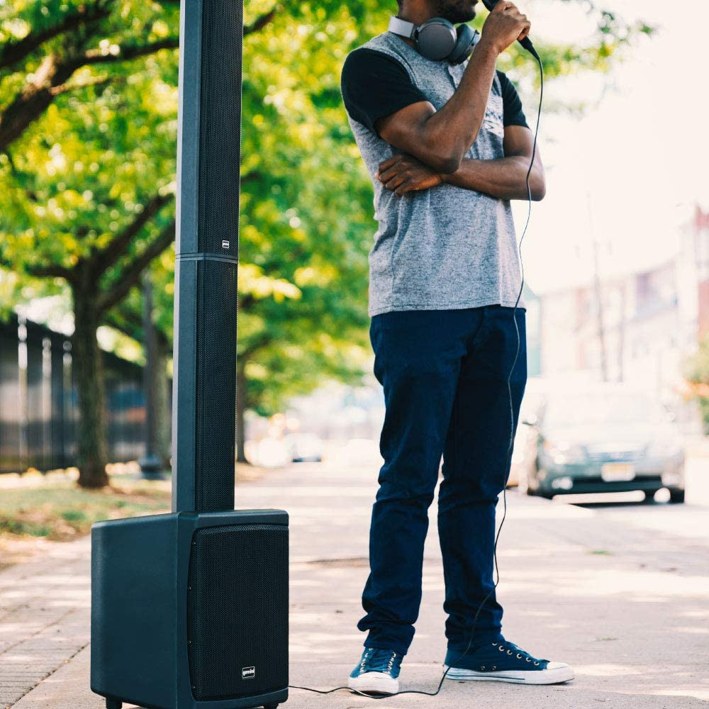 Rechargeable and PortableThis 78" tall skyscraper of a speaker is powered by a rechargeable battery that gives up to 6 awesome hours of high-performing wireless playtime. Made to rely on less gear, the WRX-900TOGO is brilliantly designed for true compact portability for musicians who demand an on-the-go sound system with effortless set-up and break-down